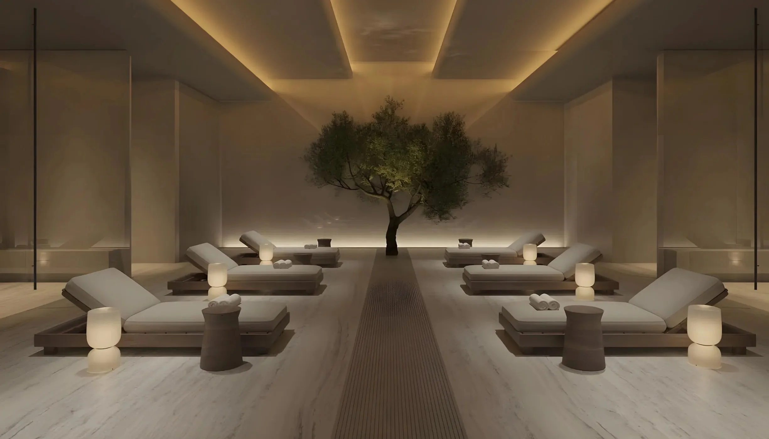 In-residence performance and recovery studios: Equipped with HealthTech, therapies, nutrition, movement and emotional spaces for daily recovery and cellular regeneration.